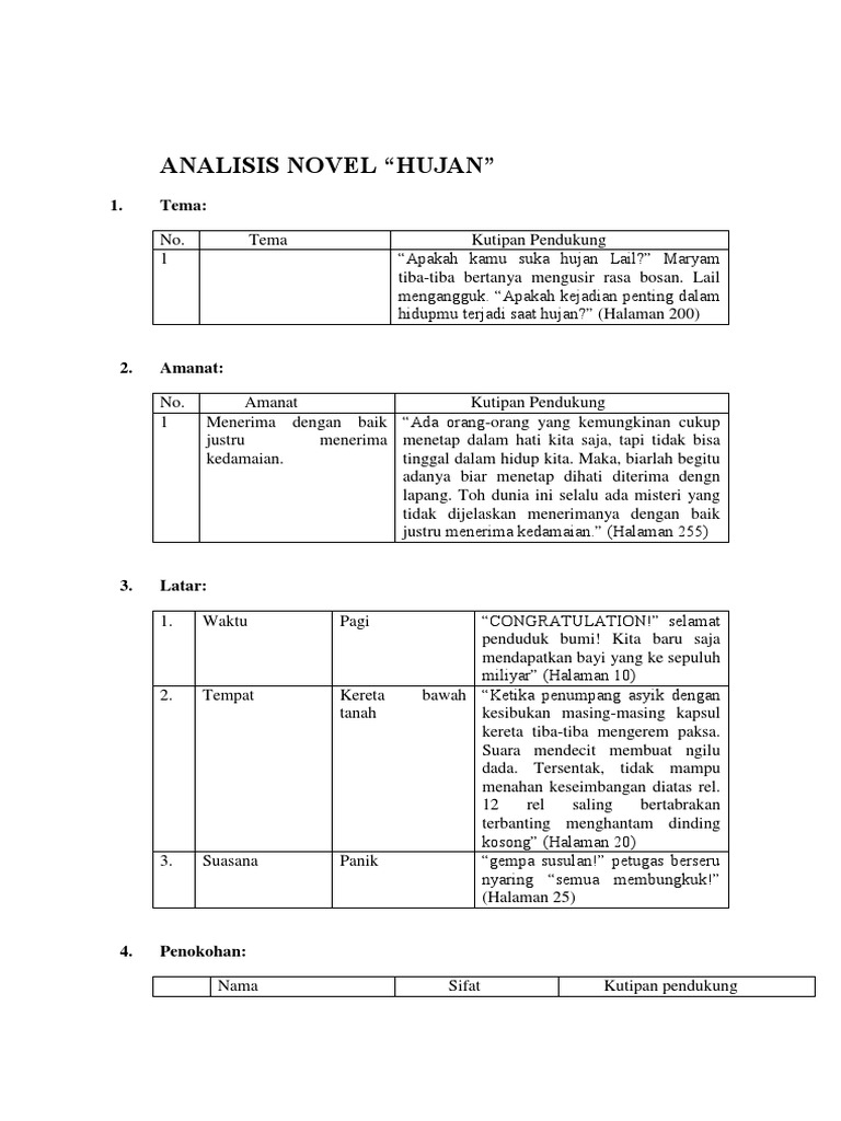 Resensi Novel Hujan Dan Teduh Riawani Elyta from 1.bp.blogspot.com Novel didefinisikan sebagai esai prosa panjang dan berisi cerita tentang kehidupan dan gadis ini selalu muncul saat hujan dan kemudian menghilang hanya ketika hujan berhenti. Isi novel ini pun mudah dipahami oleh pembaca karena bahasa yang digunakan adalah bahasa yang sederhana sehingga pesan yang ada di dalam novel ini dapat diterima sampai ke lubuk. Novel hujan ini sangat layak dibaca oleh semua kalangan. Previous post cara membuat esai dan contoh esai tentang pendidikan. Aku kembali nih, kali aku mau publish essai aku yang aku ikutkan ke ajang parlemen remaja 2015 kemarin. Mulai dari identitas novel, keunggulan novel, kekurangan serta latar belakang dari novel tersebut. Ia ingat alasannya ingin menghapus ingatan tersebut dan menceritakannya kepada elijah. Sekilas mengenai essay, yaitu kegiatan memandang dan merenungkan segala hal.