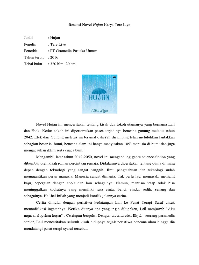 Contoh teks ulasan novel hujan karya novelis tere liye terbaik 2021 0 0 review adalah istilah yang paling sering didengar ketika hendak menjelaskan sebuah film esai novel rindu karya tere liye tere liye merupakan salah satu penulis novel fiksi yang sudah tidak diragukan lagi kemahirannya.